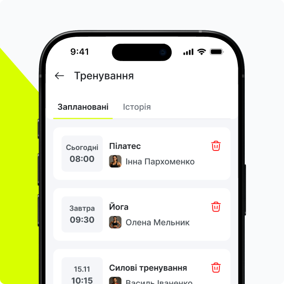 Контроль розкладу тренувань та персональних занять